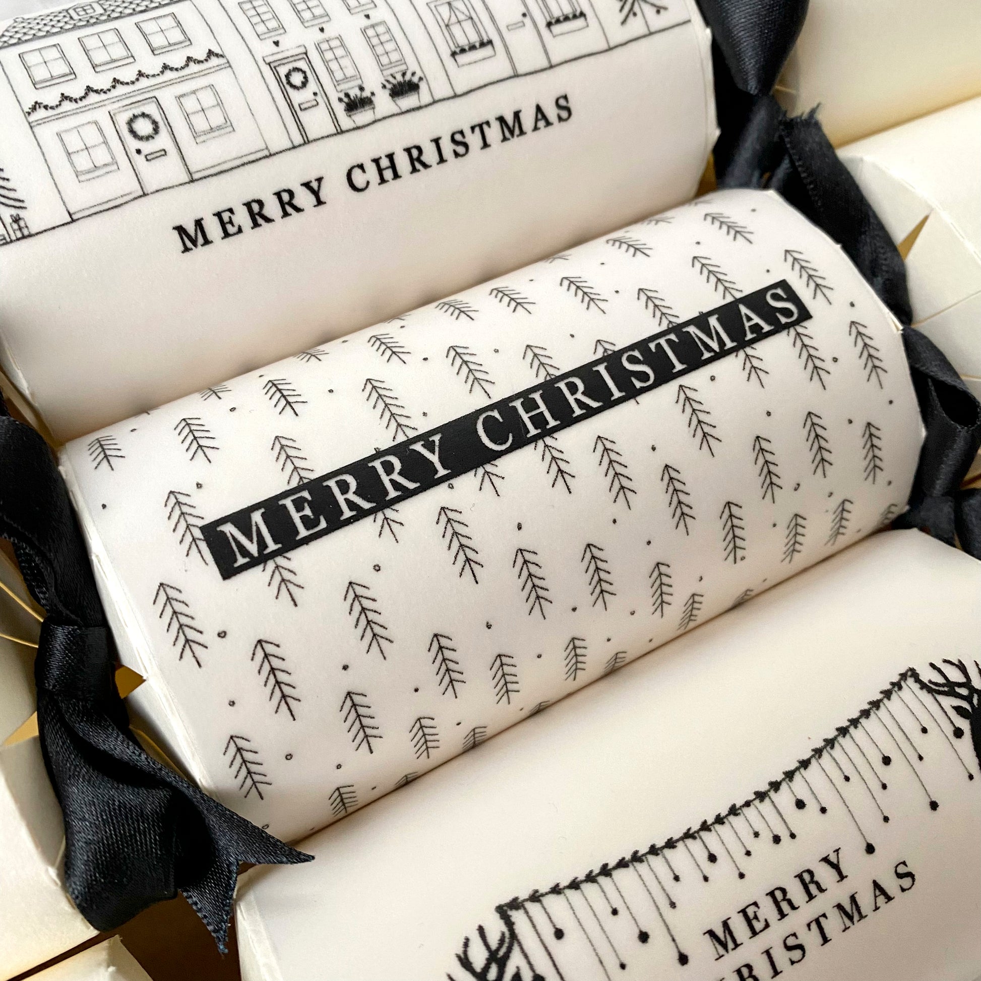 I've designed and drawn this beautiful mix and match set of Christmas crackers for you to make up at home. There is a minimum order of 6 (and no limit to how many you can order!), each one has a printed hand illustrated cracker wrap to decorate your cracker.